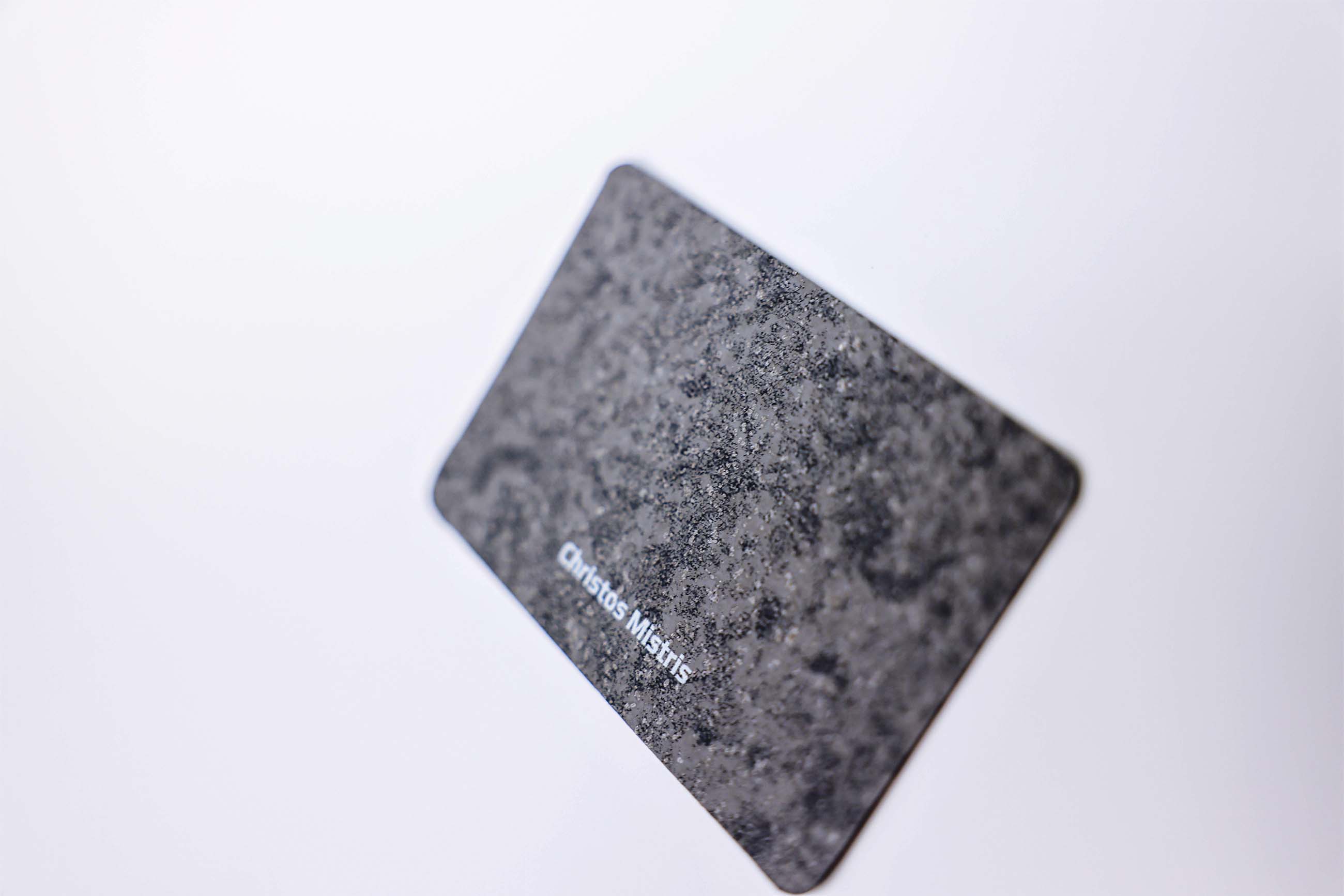 You only need one business card and that’s an NFC. Take a look at this stone-like premium paper with its textured surface and white UV print for a clean presentation of your details. On the reverse side, we’ve paired it with a deep grey paper that complements the natural look. The contrast in texture and color creates a balanced, modern aesthetic.